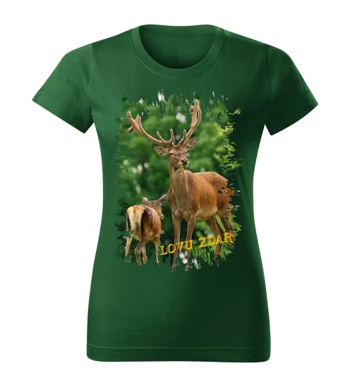 Moon River Lovu Zdar jelen sika dámské tričko pro myslivce lahvově zelené