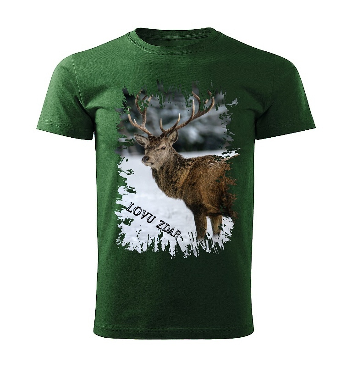 Moon River Lovu Zdar jelen v zimě dětské tričko pro myslivce lahvově zelené velikost 122