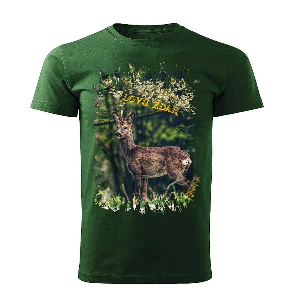 Moon River Lovu Zdar srnec pánské tričko pro myslivce lahvově zelené