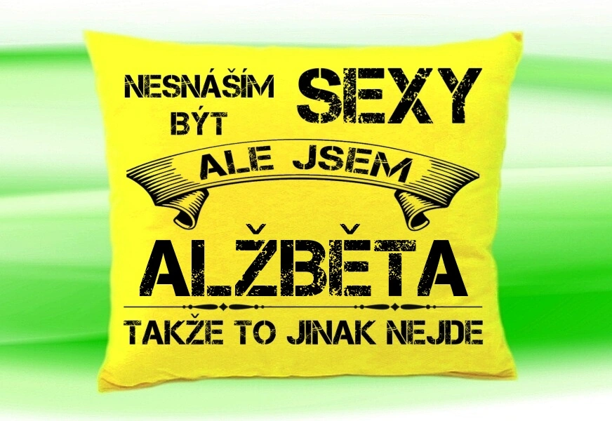 Polštář se jménem ALŽBĚTA ŽlutýSkladem 10 ks249 Kč/ ks206 Kč bez DPH
