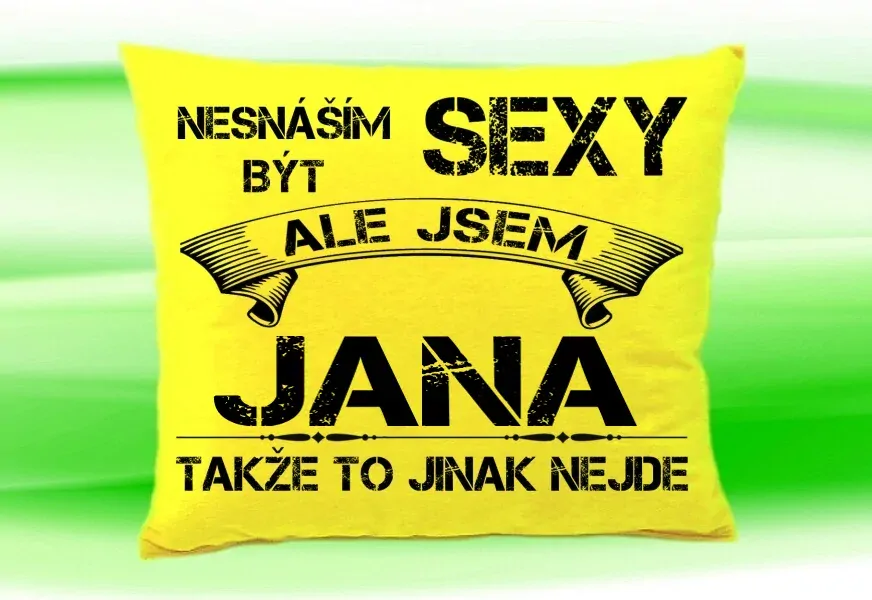 Polštář se jménem JANA ŽlutýSkladem 10 ks249 Kč/ ks206 Kč bez DPH