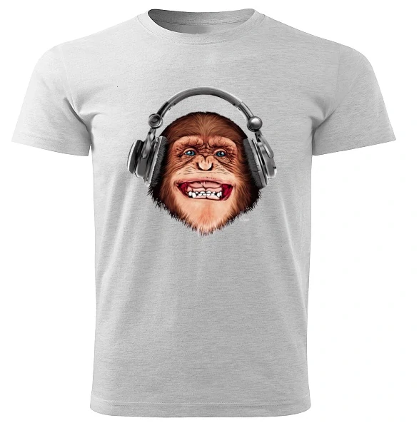 tričko opice se sluchátky světle šedý melír
